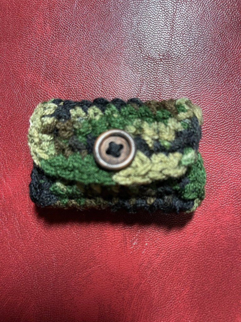 • YARN: while any worsted weight yarn will work, I found that cotton yarn created the more sturdy item. I used Capri Eco Cotton – purchased from Michael’s – for those pictured above (similar yarn from Joann’s – Big Twist – would also work). The CAMO tamer pictured was crocheted with Red Heart Super Saver in Camouflage.