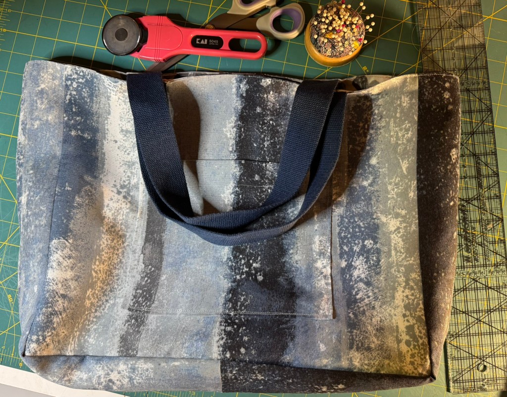 Somewhere in between these projects, I also decided to make another tote like my cats bag (which gets compliments every time I take it – filled with yarn – to the local crafting group). I chose a CANVAS remnant from my stash for it’s main/outside fabric. Pictured below, I intentionally made this same pattern soon after I made that first one to solidify my skill in the new (to me) process for turning the corner on the bag. I have found that this quick sequencing of multiple makes on the same pattern is extremely helpful to me in remembering the tips and tricks that I figure out (or that my sister shares with me along the way), so that the next time I want to make this, it’s simple and straightforward.