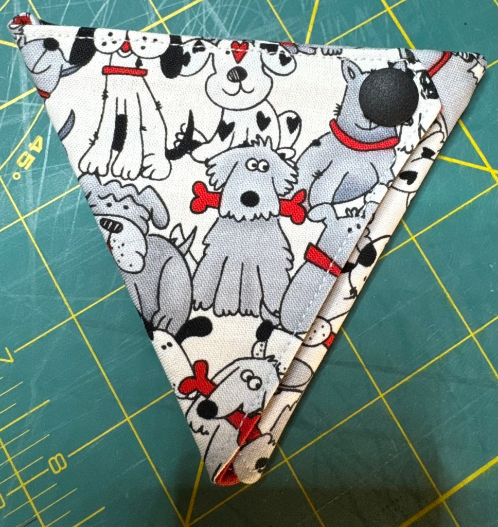 Sometimes when I have a limited amount of time, and am not in the mood to play with yarn, I’ll head to my sewing room and do a quick project, like the small, triangle coin purses I made last week. This week that impulse resulted in a gift for my daughter, who is a dog lover.