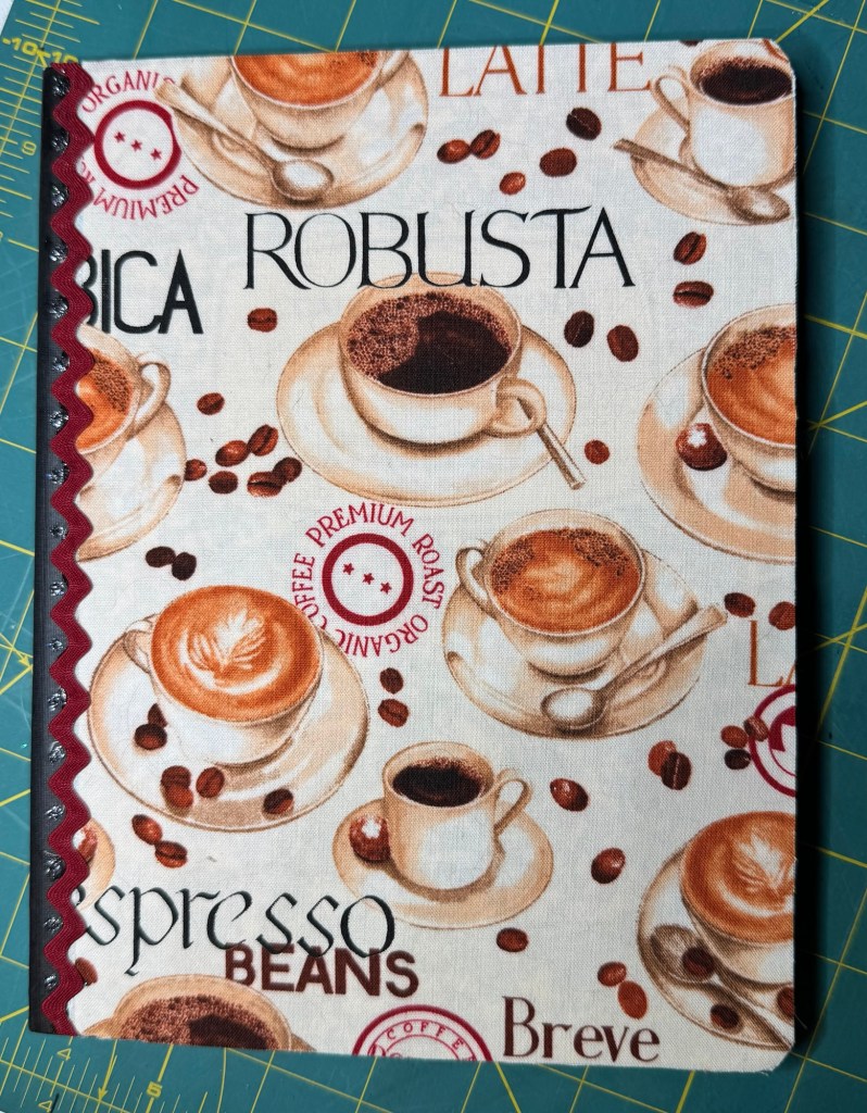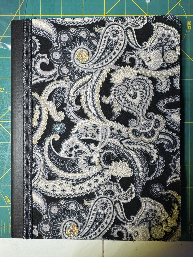 Related to my transformed holiday energy, I’ve also been using stash supplies to make small “just because” gifts for people. This year, I’m experimenting with the fabric covered composition notebooks. Here are 2 of these: